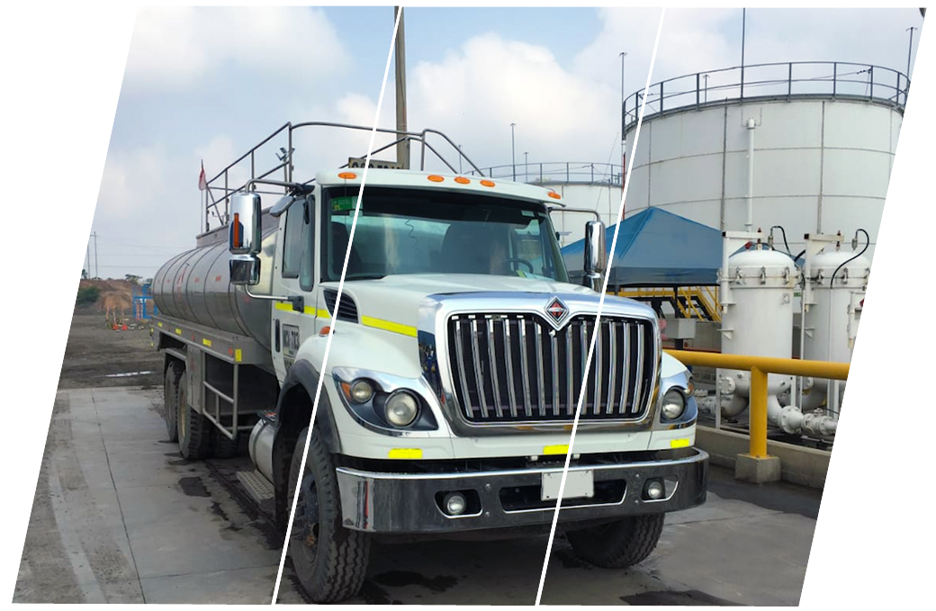 Rótulos de identificación de sustancias en el cabezote y el tanque (rombos y números UN).